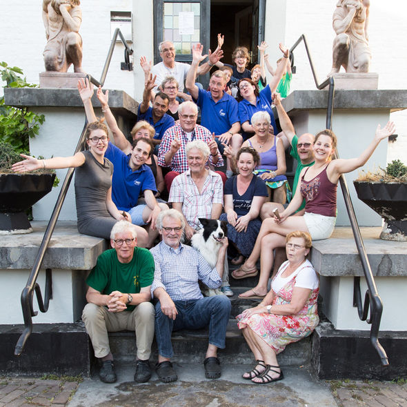 De vrijwilligers van Woarum Nie bij het Kasteel De Berckt, Cocky en Mark bij het laatste Trek er es Uut festival (TEEU).
